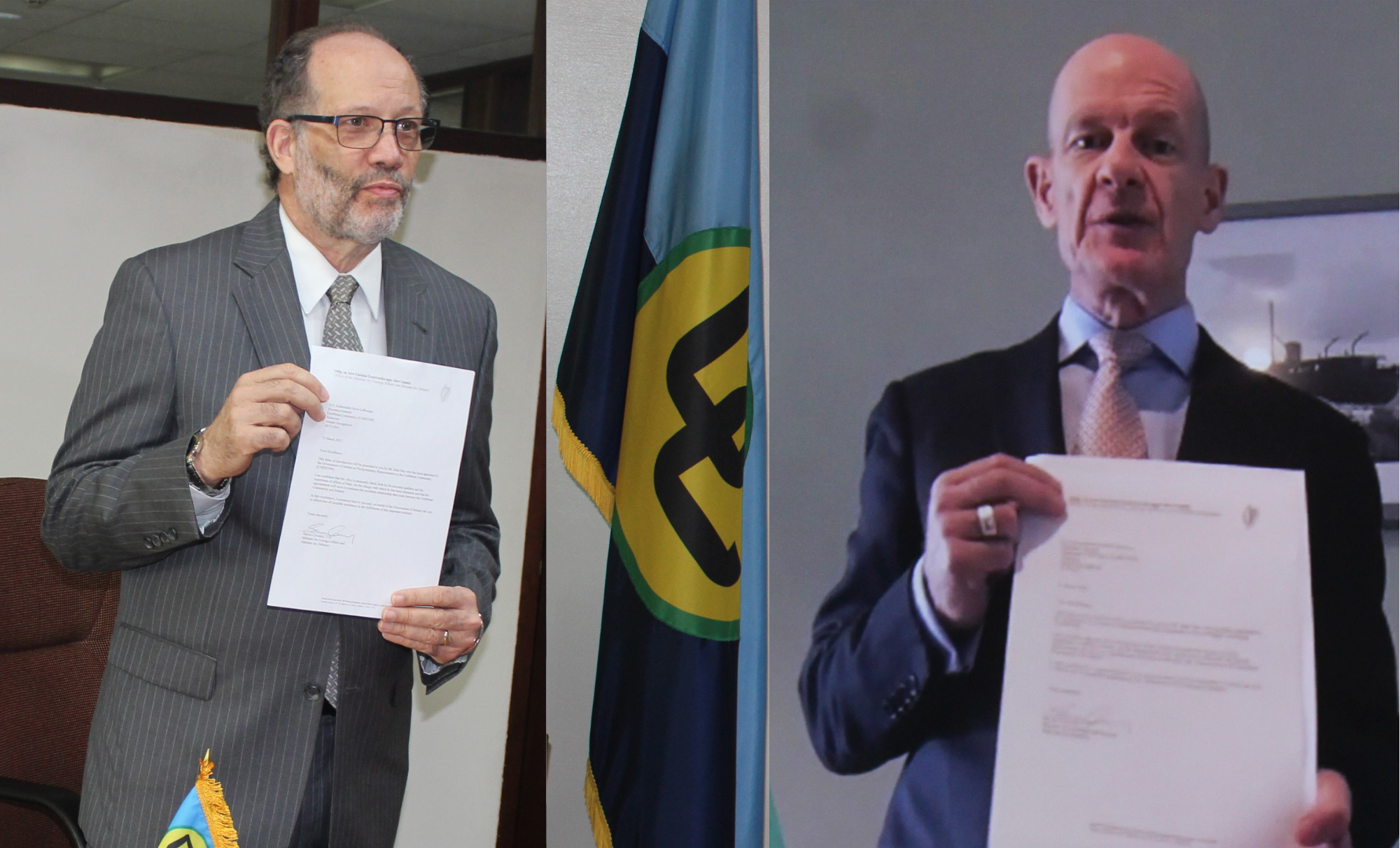 The Republic of Ireland’s new Ambassador to CARICOM H.E. Seán Hoy presented his Credentials to Secretary-General Ambassador Irwin LaRocque in a virtual ceremony on Wednesday, 28 April 2021.